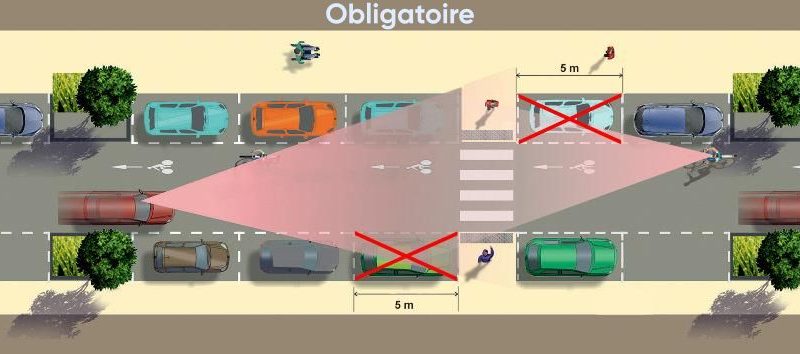 À un an et demi de l’échéance, la règle des 5 m en amont de chaque passage piéton (art. L118-5-1) est encore trop peu appliquée. Plutôt qu’un retrait sec de places, saisissons cette chance : arceaux vélo, îlots de verdure, meilleure visibilité pour les piéton·ne·s.